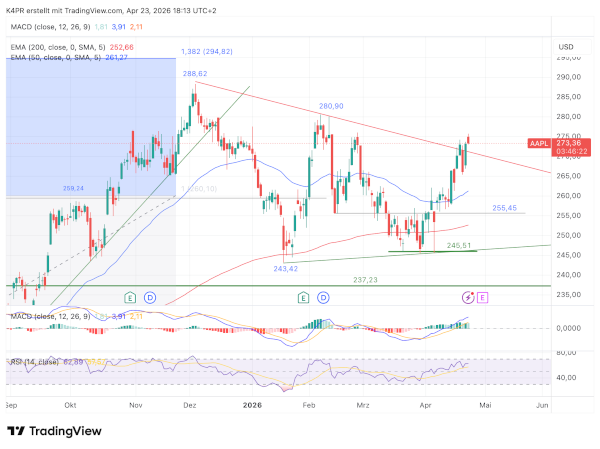 Charttechnisch bleibt es spannend: Sollte die Aktie auf Wochenschlussbasis über 275,00 US-Dollar steigen, könnte dies eine neue Aufwärtsbewegung auslösen. Erste Ziele liegen dann bei 280,90 und 283,15 US-Dollar. Mittelfristig wären sogar ein Anstieg auf das bisherige Rekordniveau von 288,62 US-Dollar aus Dezember sowie später auf 310,49 US-Dollar denkbar. Scheitert der Ausbruch jedoch und der Kurs fällt unter 260,00 US-Dollar, müsste mit einer Verlängerung der Seitwärtsphase gerechnet werden – mit möglichen Rückgängen bis auf 247,50 US-Dollar.