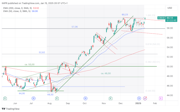 Die Vorgabe für die Cisco-Aktie sieht einen nachhaltigen Tagesschlusskurs oberhalb der Dezemberhochs von 60,23 US-Dollar vor, nur in diesem Fall könnten weitere Zielmarken bei 61,92 und schließlich den Verlaufshochs aus Dezember 2021 bei 64,29 US-Dollar aktiviert werden. Eine überschießende Welle könnte zeitweise sogar an 66,24 US-Dollar heranreichen, ehe wieder eine mehrwöchige Konsolidierung bei Cisco einsetzt. Sollte sich der Vorstoß vom Mittwoch jedoch als Fehlsignal entpuppen und die Aktie unter den 50-Tage-Durchschnitt bei 58,06 US-Dollar zurückfallen, dürften empfindliche Abschläge sogar bis in den Bereich von 56,70 US-Dollar heranreichen. Sollte auch dieses Niveau bärisch gekreuzt werden, müsste für das Papier ein neuerliches Kursziel sogar um 53,52 US-Dollar ausgerufen werden.