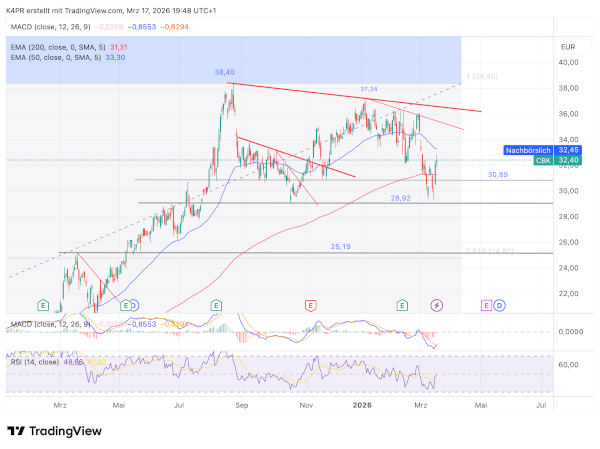 Auf der anderen Seite bleibt ein Rückschlagsrisiko bestehen: Erst wenn die wichtige Unterstützung bei 28,92 Euro nachhaltig unterschritten wird, könnte die Aktie stärker unter Druck geraten und in Richtung 25,19 Euro fallen – ein Niveau, das zuletzt im März 2025 erreicht wurde.