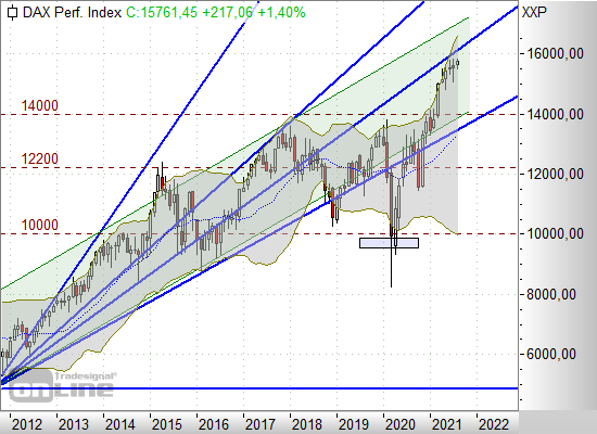 VDAX-New der Deutschen Börse (09. August 2021): Bei 17,61% (Vortag: 18,02%). Unter 17% kaum stärkere Abwärtsbewegung.