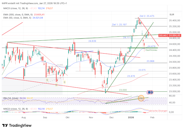 Sollte der Index allerdings bereits jetzt nachhaltig über sein bisheriges Rekordhoch von rund 25.500 Punkten ausbrechen, würde dies frühzeitig ein deutlich positives Signal senden und neue Rekordstände schneller in Reichweite rücken.