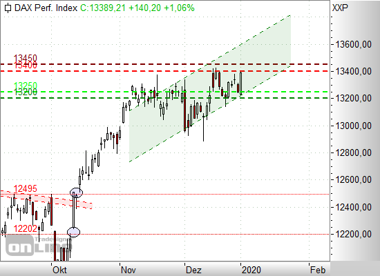 Mit dem heutigen Anstieg über 13.250/13.300 Punkte hat sich die Lage im DAX wieder aufgehellt. Solange der Index nun über 13.250 Punkten notiert, ist mit einem weiteren Kursanstieg bis 13.660 Punkte zu rechnen.
