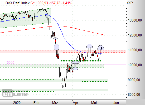 DAX bei 11.065 Punkten, vorbörslich bei 10.920 Punkten.