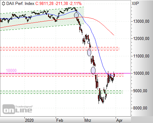 VDAX-New der Deutschen Börse (31. März 2020): Bei 57,19% (Vortag 62,18%). Unter 17% kaum stärkere Abwärtsbewegung.