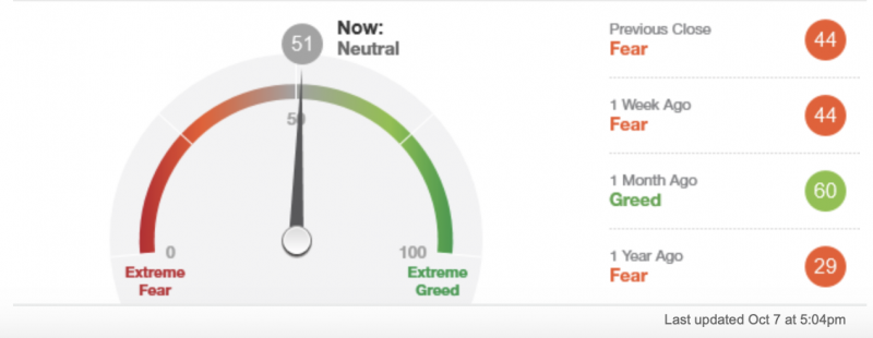 1. CNN Money's Fear & Greed Index (08. Oktober 2020): Bei 51 (Vortag: 45) Punkten, Modus "Neutral".