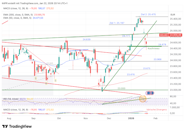 Trotz der aktuellen Entspannung bleibt eine gewisse Unsicherheit. Unter Präsident Trump können politische Richtungswechsel jederzeit wieder für Verwirrung sorgen. Auf der anderen Seite gilt: Erst wenn der DAX deutlich unter 24.500 Punkte fällt, würde sich das Bild merklich eintrüben. In diesem Fall könnte sogar ein Rückgang in Richtung 24.000 Punkte drohen.