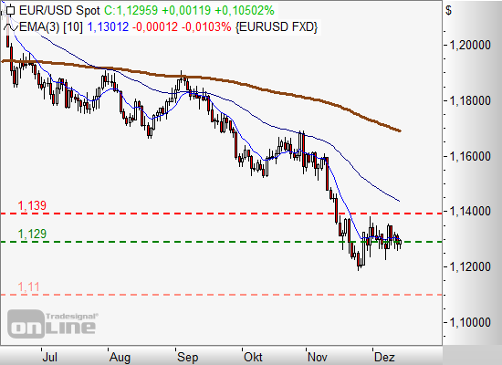 1. Short-Position bei 1,129 Dollar eröffnet. Stopp 1,139 Dollar. Kursziel 1,110 Dollar.