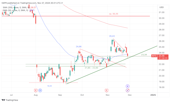 Tagesschlusskurse unterhalb von 23,00 US-Dollar würden demnach für einen weiteren Abschlag um mindestens einen Dollar, darunter sogar auf 21,65 US-Dollar sprechen und sich für ein kurzzeitiges Short-Engagement anbieten. Eine überschießende Welle könnte in dieser Phase sogar noch auf 20,89 US-Dollar talwärts reichen, ehe Intel wieder auf tragfähige Unterstützungen trifft und zur Oberseite abdreht. Entsprechende Short-Positionen können bereits jetzt vorbereitet werden. Auf der Oberseite gilt es dagegen mindestens das aktuelle Wochenhoch bei 25,57 US-Dollar zu überwinden, damit noch einmal das Novemberhoch bei 26,43 US-Dollar einem Test ausgesetzt werden kann. Bleibt der Chipsektor in den nächsten Tagen insgesamt schwach, könnte schon bald das zuerst vorgestellte Szenario greifen.