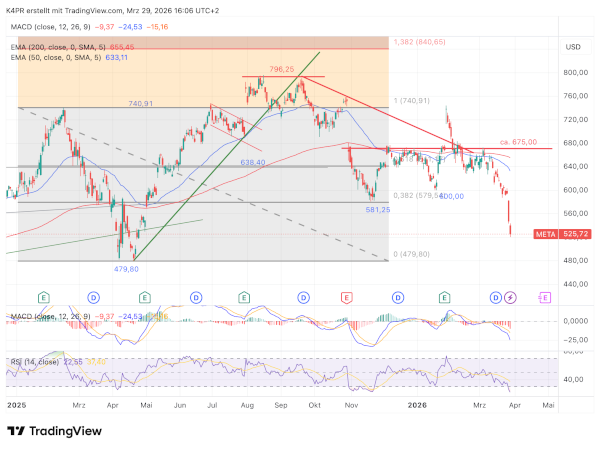 Die Reaktion an der Börse fiel deutlich aus. Die Aktie von Meta Platforms geriet stark unter Druck und fiel im Freitagshandel auf den tiefsten Stand seit April 2025. Mit einem Schlusskurs von 525,73 US-Dollar ging das Papier aus der Woche.