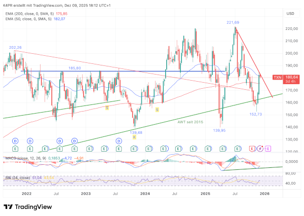 Gelingt ein nachhaltiger Ausbruch über die Marke von 186,00 US-Dollar, würde dies den Weg für eine zweite Aufwärtsbewegung in Richtung 208,15 US-Dollar freimachen. Für kurzfristig orientierte Anleger könnte das ein attraktives Setup darstellen.