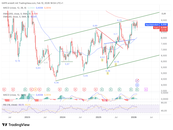 Auf der Unterseite gilt jedoch ebenfalls Vorsicht: Sollte die Aktie unter den 50-Wochen-Durchschnitt bei 8,03 Euro fallen, könnte eine längere Schwächephase folgen. In diesem Fall wäre ein Rücksetzer bis in den Bereich um 6,66 Euro denkbar. Vorerst zeigt sich die TUI-Aktie jedoch vergleichsweise stabil und könnte sich für geduldige Anleger noch als interessantes Einstiegsniveau erweisen.