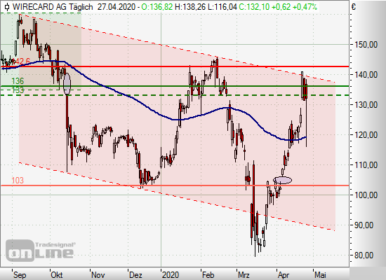 1. Short-Position um 133,00 bis 136,00 Euro eröffnet. Stopp in den Gewinn nachziehen. Kursziel 103,00 Euro.