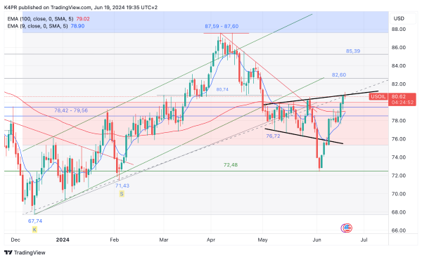 Nach erfolgreicher Abarbeitung der Ziele um 78,00 und schließlich 80,58 US-Dollar dürfte der Rohöl-Future WTI kurzzeitig in eine Konsolidierungsphase übergehen, diese könnte sich bis in den Bereich der beiden gleitenden Durchschnitte EMA 50/200 um 79,00 US-Dollar erstrecken. Sollte größerer Konsolidierungsbedarf bestehen, könnte der Rohstoffsog auf 77,25 US-Dollar zurücksetzen, ehe die obere Keilbegrenzung verlaufend um 80,85 US-Dollar erneut ins Visier genommen wird. Ein erfolgreicher Ausbruch darüber auf Tagesschlusskursbasis würde dem Energieträger weiteres Aufwärtspotenzial sogar an 82,60 US-Dollar je Fass bescheren. Kurzzeitig sollte die Begrenzung aber nicht unterschätzt werden und bietet daher wenig Raum für frische Long-Positionen. Zeitgleich können jetzt auch sämtliche Gewinne realisiert werden - die Idee ist aufgegangen, die Long-Position wird geschlossen.