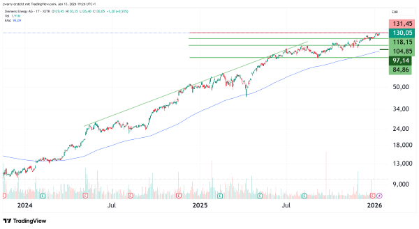 Der Aktienkurs von Siemens Energy setzt offenbar die positive Entwicklung aus dem Jahr 2025 fort und verzeichnet weitere Kursgewinne.