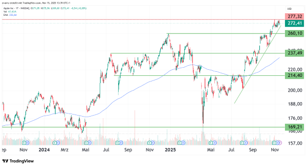 Bei der Ankündigung von Ternus könnte es kurzfristig Volatilität geben, nachdem Anleger Gewinn mitnehmen und andere wiederum vermehrt einsteigen sollten. Nach einer langen Seitwärtskonsolidierung, beginnend mit Ende Juli 2023 bis Mitte Juni 2024, konnten die Aktien von Apple schließlich doch ein Allzeithoch rund um den Wert von 260,10 US-Dollar markieren. Genau genommen wurde das Allzeithoch am 26. Dezember 2024 etabliert, und danach startete eine Abwärtssequenz. Diese Abwärtssequenz beschleunigte sich, als den Marktteilnehmern klar wurde, wie strikt Donald Trump die Zollideen in der Realität zu implementieren versucht. Bis vergleichbare Produktionskapazitäten in den USA aufgebaut werden, sollten Jahre vergehen und die Produktionskosten nach oben schnellen. Aktuell gehen Marktteilnehmer aber davon aus, dass Apple auch in den USA eine blühende Zukunft hat, nachdem der Kurs seit der Bodenbildung im Mai und Juni 2025 wieder einen Aufwärtstrend und neue Allzeithochs gebildet hat. Der intakte Aufwärtstrend könnte aus heutiger Sicht also noch ein wenig weiterlaufen. Dafür spricht, dass der Kaufdruck in den vergangenen Wochen nicht zu stark war. Es sollten also noch Marktteilnehmer geben, die über einen Einstieg auf diesem Niveau nachdenken und den Kurs weitertreiben könnten.